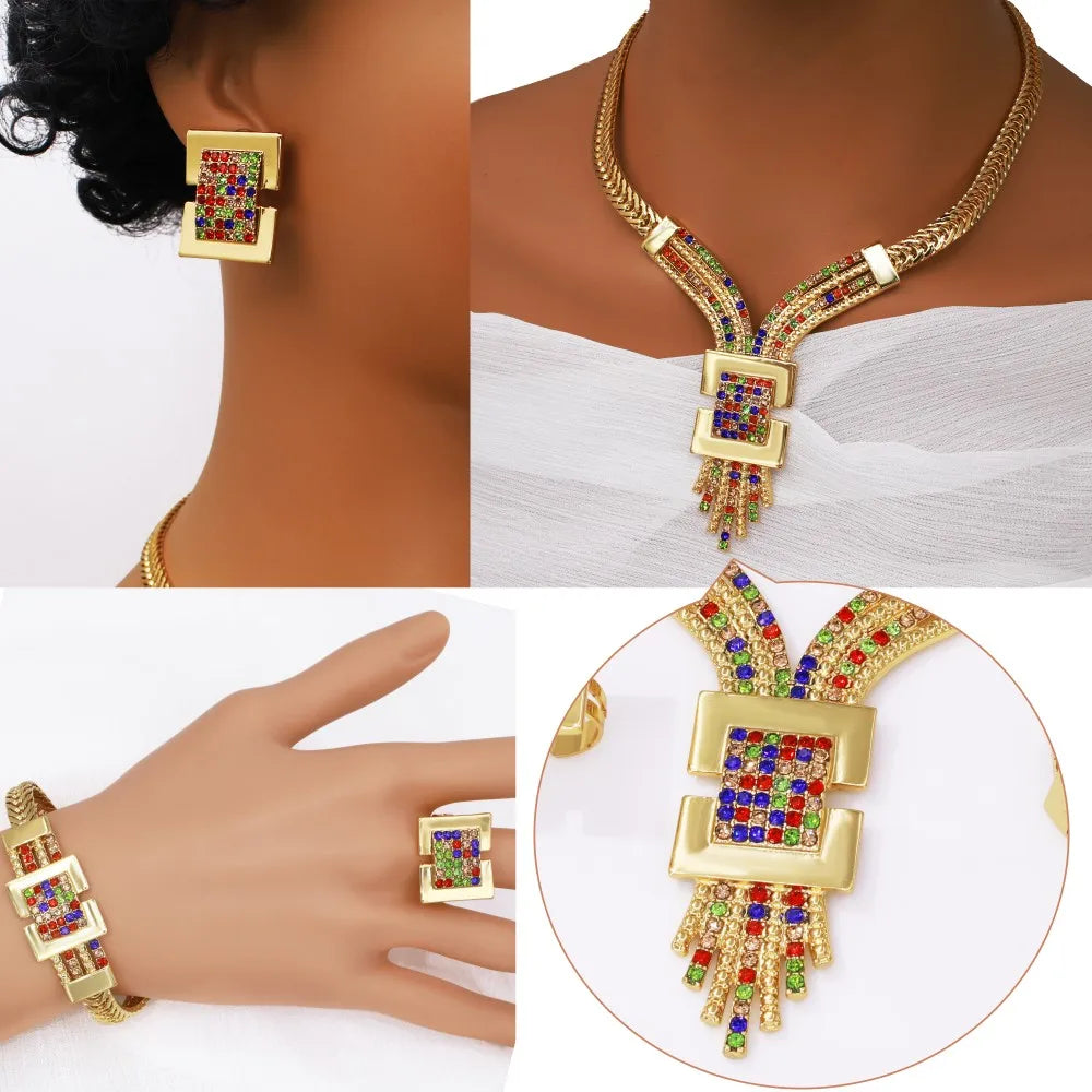 GZJPEI Gold Plated Jewelry Set African Dubai Nigeria Charm Necklace Bracelet Earring Ring For Women 2025 New Banquet Jewellry