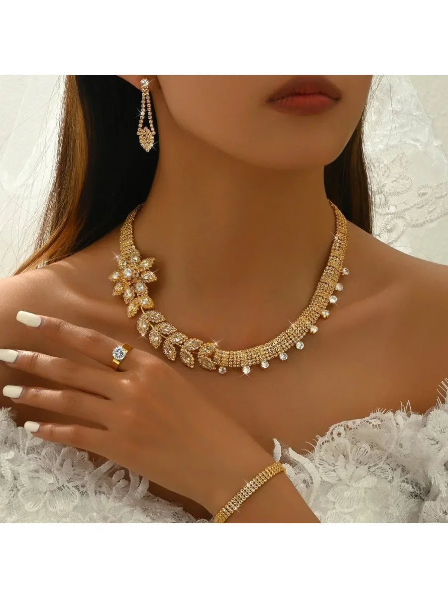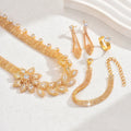 High Grade Flower Earrings Necklace Bracelet Ring Jewelry Set Gold Plated Jewelry Set Wedding Banquet Party Holiday Gift