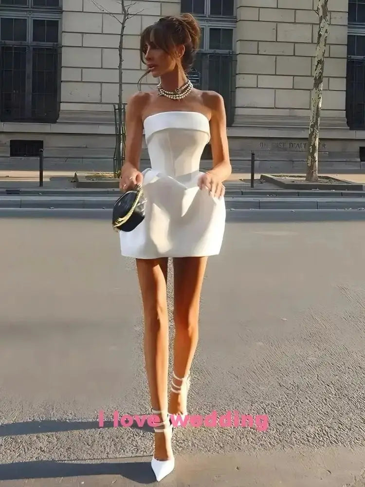 Homecoming Dress 2025 White Satin Wedding Party Dress Sleeveless Ball Gowns Mini Cocktail Dress Backless Sexy Elegant Customized