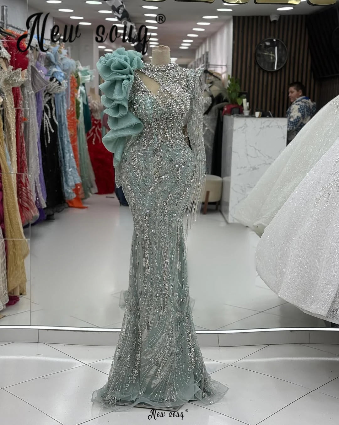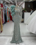 Hot Sale Mint Green Ruffles Sheath Prom Evening Dress Deep With Long Sleeve Tassels Wedding Party Gowns Vestidos Customized