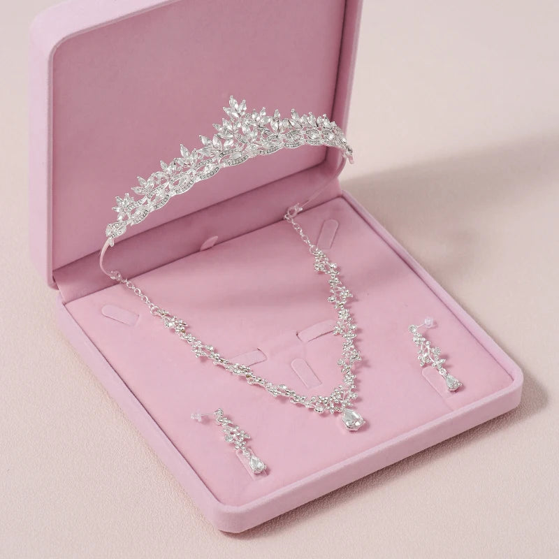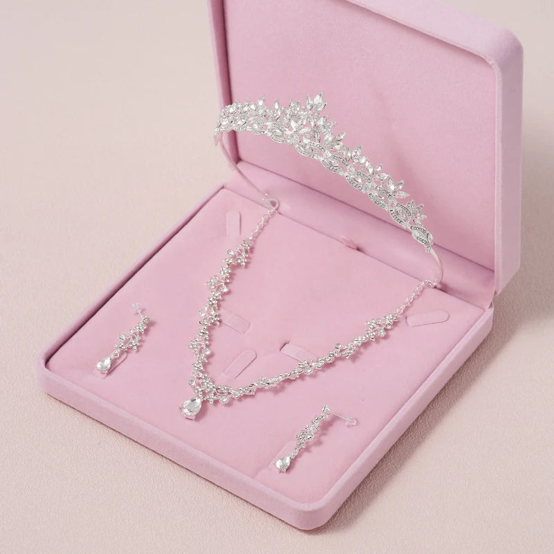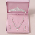 Itacazzo Bridal Headwear Set of Four Crown&Necklace&Earrings Silver-Colour Women's Classic Wedding Tiaras (Excluding Box)