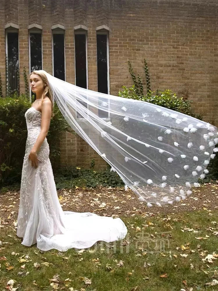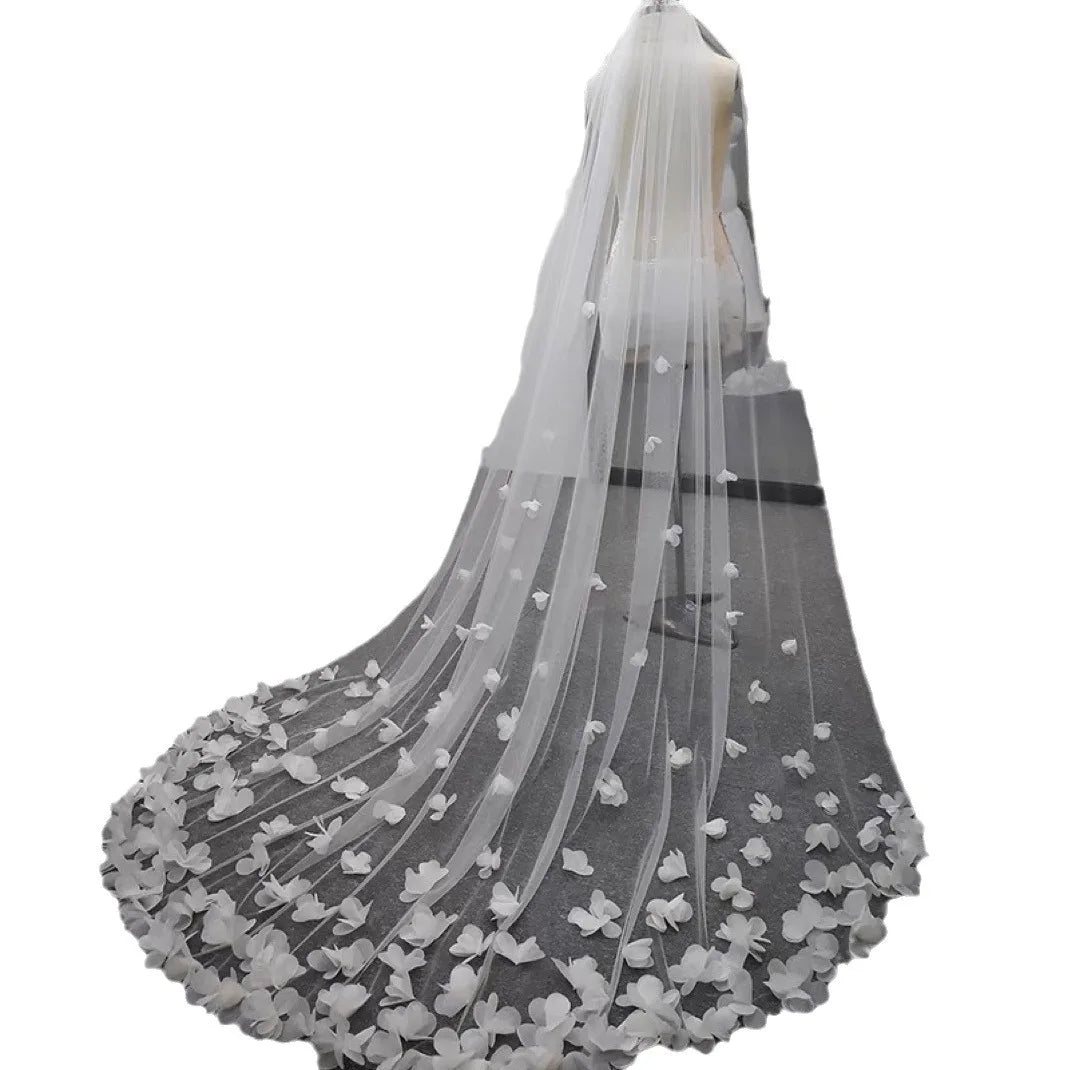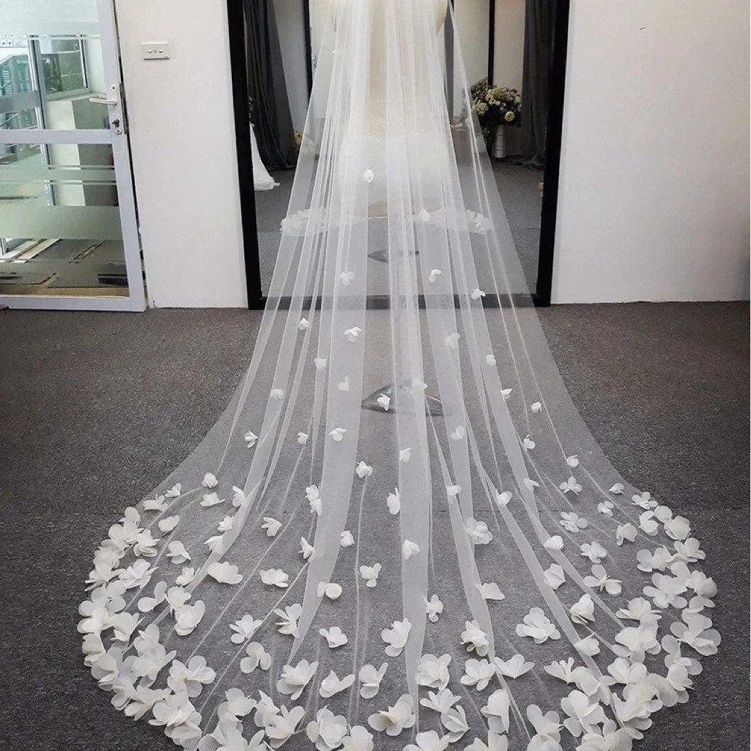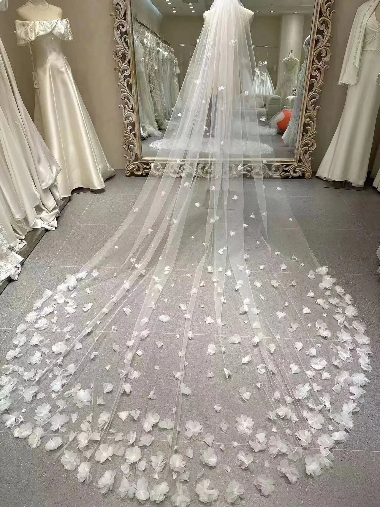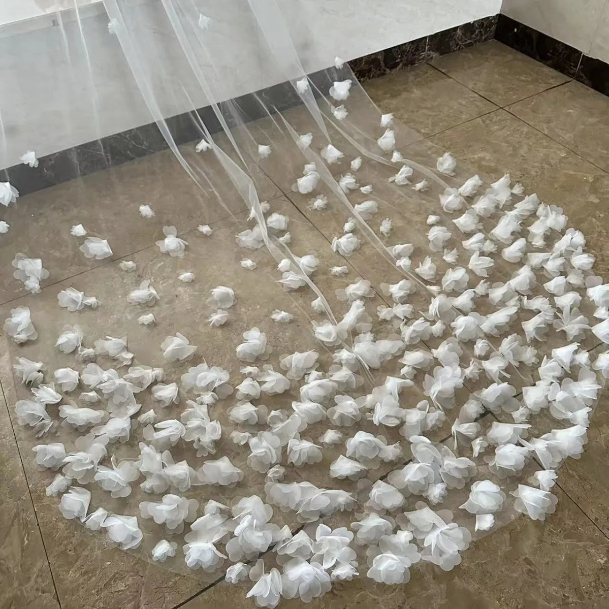 Ivory Bridal Veil Long Cathedral Wedding Veil 3D Flowers Floral Lace Petals Veil for Bride with Comb Velos De Novia