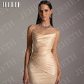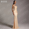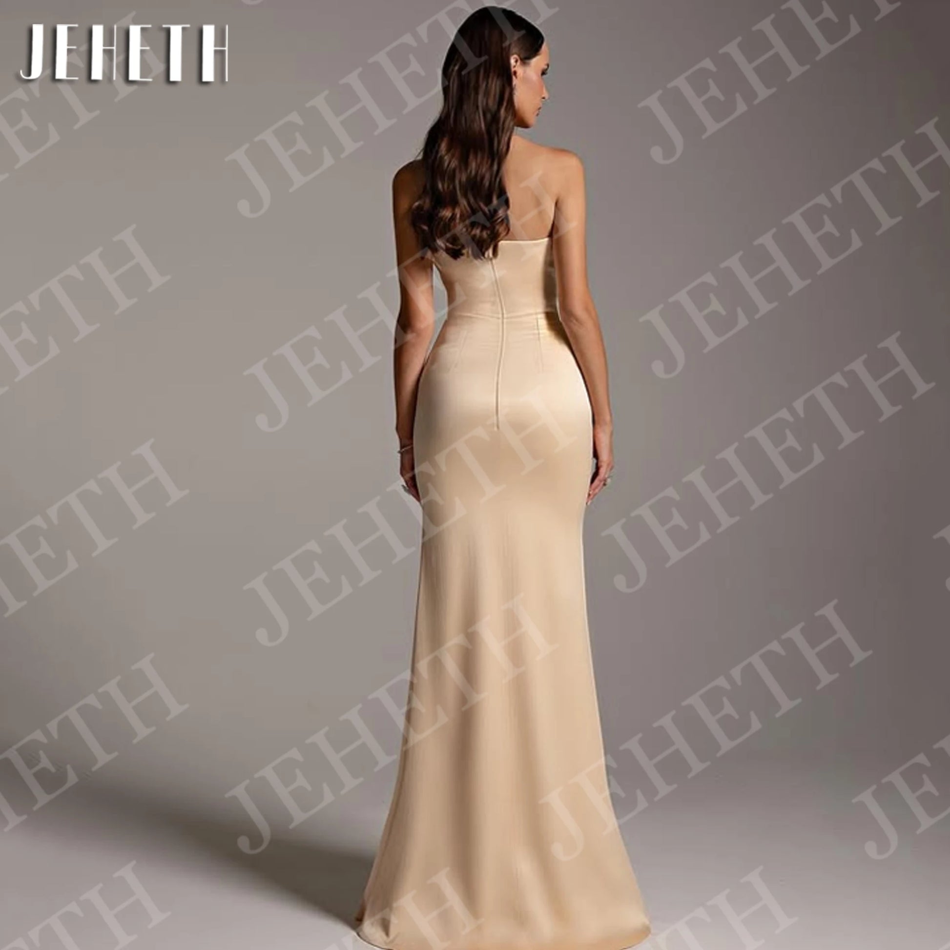 JEHETH Satin Mermaid Evening Dresses Charming Lady Prom Gown Elegant Strapless Ruched Party Dress Champagne Customized Woman
