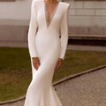 JEHETH V-neck Satin Wedding Dress Mermaid Zipper Beading Bridal Dress Elegant Floor-Length BOHO Long Sleeve Vestidos De Novia