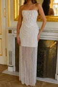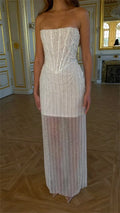 Kyoto Customized Ivory Shiny Sequins Strapless Wedding Dress Column Beaded vestidos de novia Floor-Length Lace-Up Formal Evening