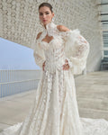Kyoto Customized Lace Embroidery Two-piece A-line Wedding Dress Detachable Long Sleeves vestidos de novia Luxurious Formal 2025
