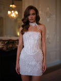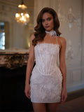 Kyoto Customized White Fairy 3D Appliques Wedding Dress Gorgeous Mini Strapless vestidos de novia Lace-up Back After Party Gown