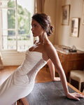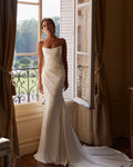 Kyoto Customized White Strapless Beads Wedding Dress Mermaid Chapel Train vestidos de novia Zip Back Sleeveless Evening Dresses