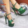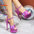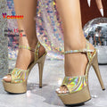 Laser Rainbow Color 15CM Sandals Women Stiletto Solid Wedding Shoes Platform High Heels Summer Pole Dance Shoes Zapatos Mujer