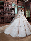 Liyuke Custom Made Luxury Scoop Neckline Ball Gown Wedding Dress With Elegant Barrel Skirt Of Princess Wedding Gown