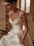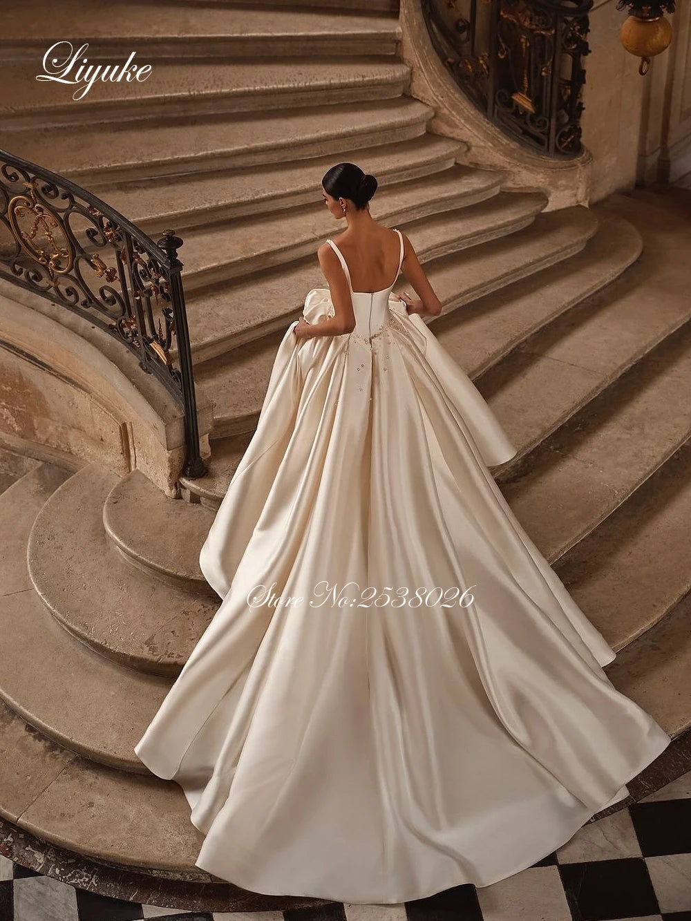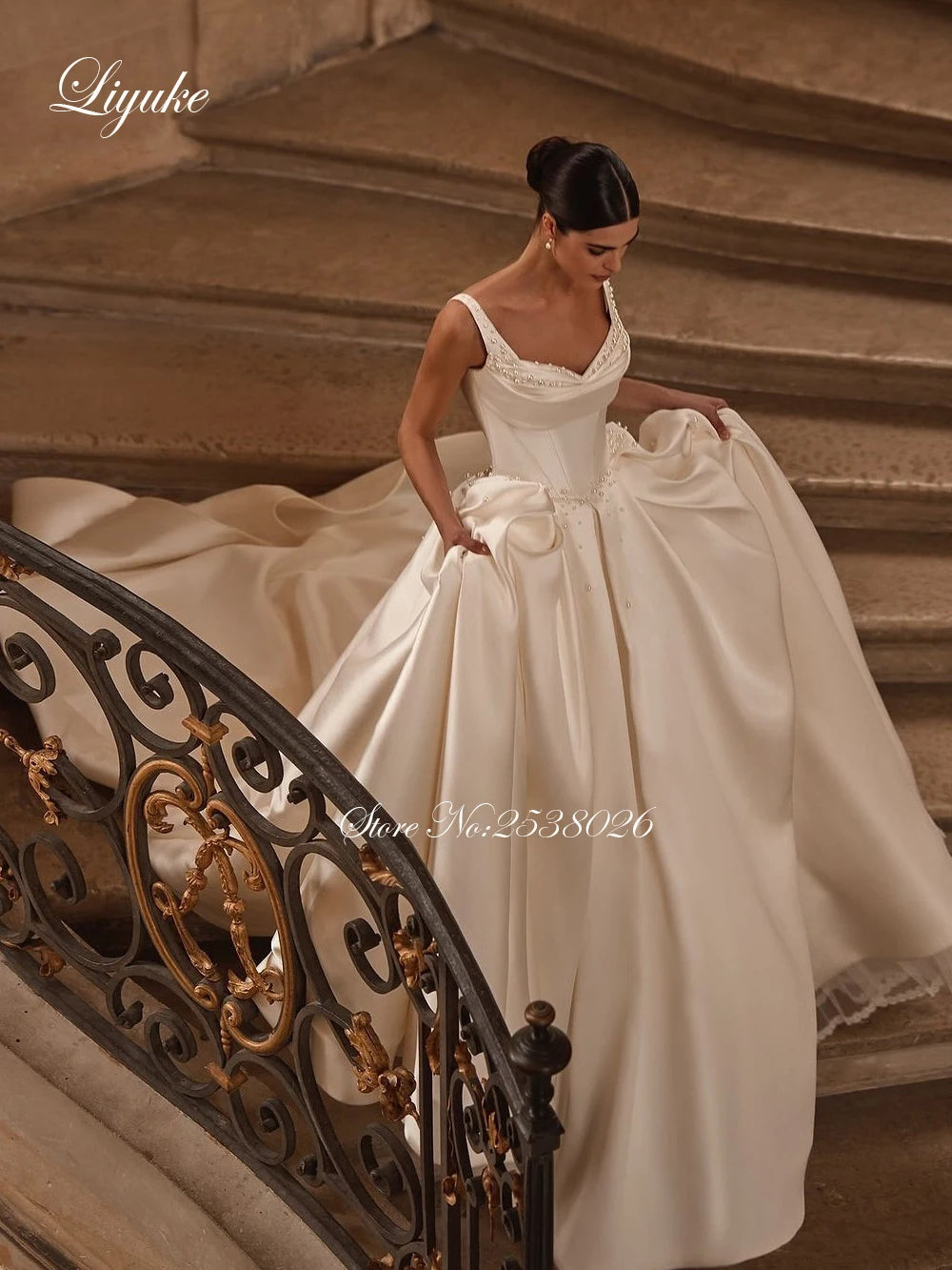 Liyuke Customize Made Luxury Satin Ball Gown Wedding dresses Spaghetti Straps Beading Pearls Elegant Bridal Gowns