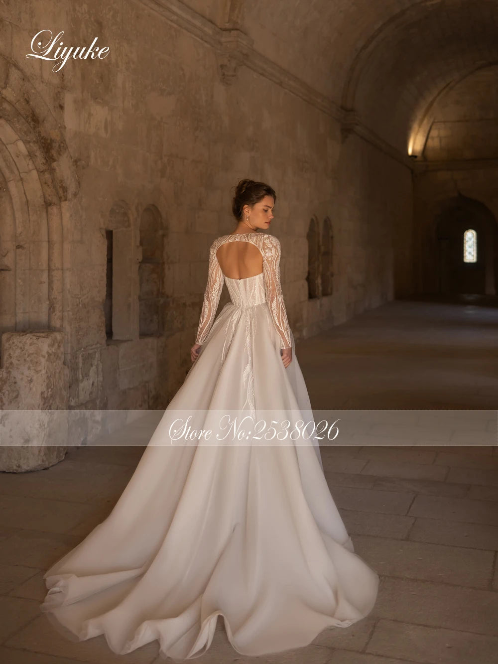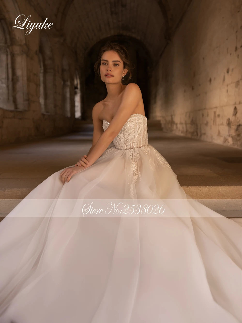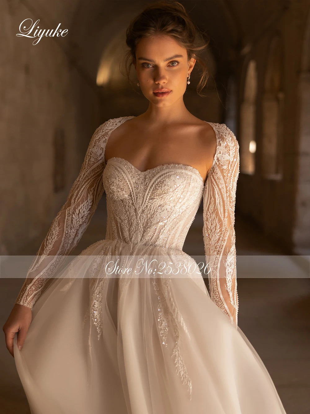 Liyuke Stunning A-line Tulle Wedding Dress Exquisite Beaded Floral Lace Corset Sweetheart Bridal Gowns