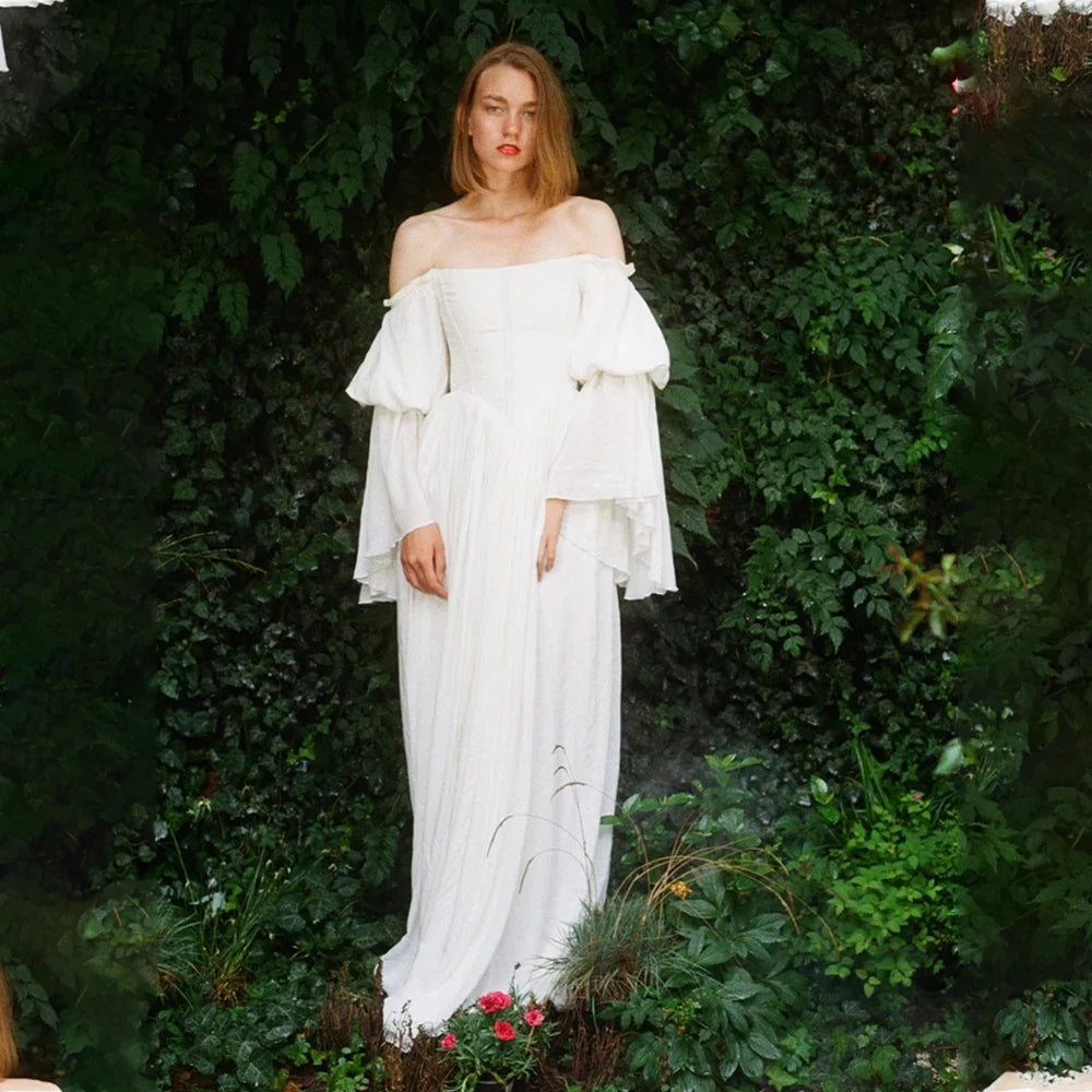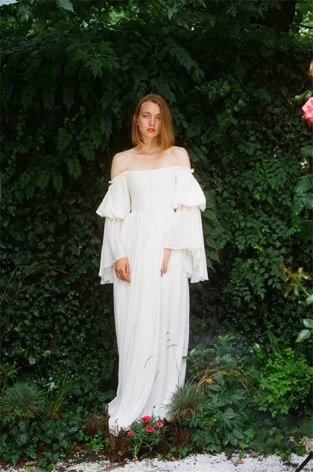 Long Puff Sleeves Pleat Sweetheart Bridal Grown A Line Wedding Dresses Custom Made 2026 Vestido De Noival
