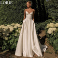 LORIE Elegant Satin Wedding Dresses A-Line Strapless Lace-up V-Neck Pleated Chic Bride Prom Gown Simple Bridal Gowns Customized