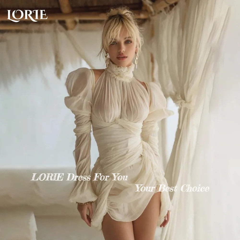 LORIE Vintage Puff Short Wedding Dress High Collar A-Line Tulle Mini Bridal Gown Princess Pleats Bride Gown Customized No Golve