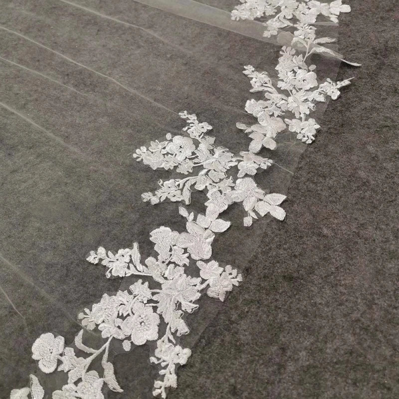 Luxurious Full Edge Lace Wedding Veil Ivory White Cathedral Long Women Bridal Veil 3m 4m 5m Customized Veil For Wedding Dress