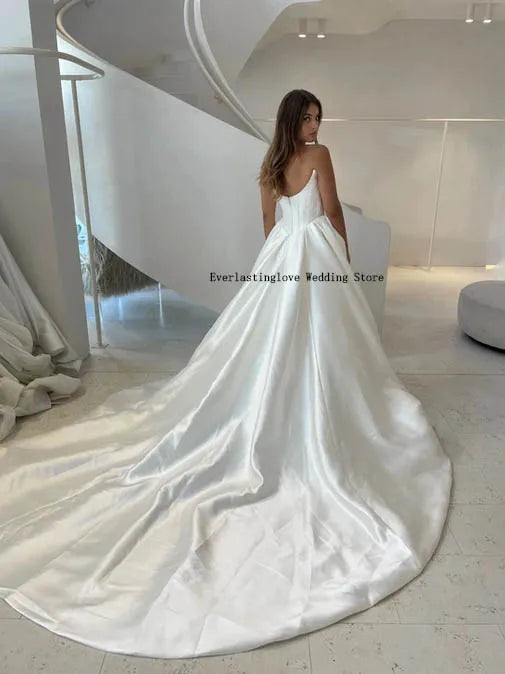 Luxurious Sweethart Satin A Line Wedding Dresses Side Slit Sweep Train Custom Made 2024 Vestido De Noival