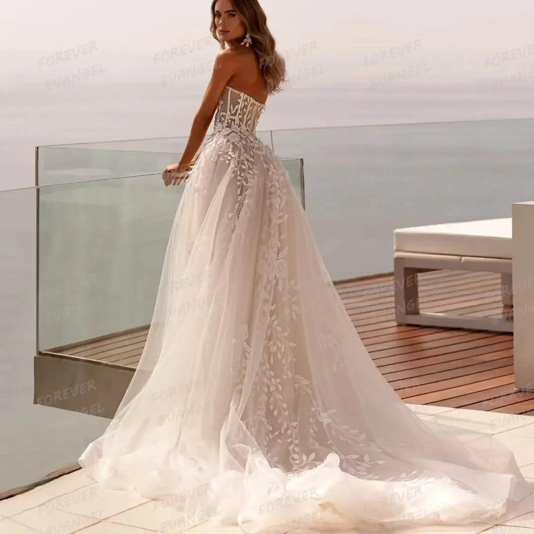 Luxury Appliques Princess Wedding Dresses Woman's A-Line Sexy Appliques Sweetheart Sleeveless Bride Gowns Vestidos Customized