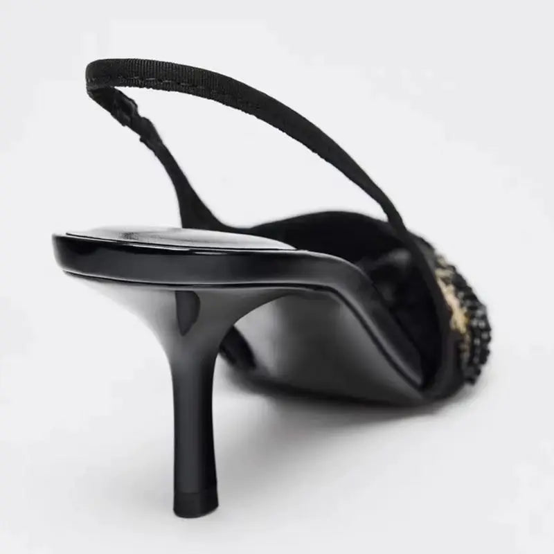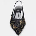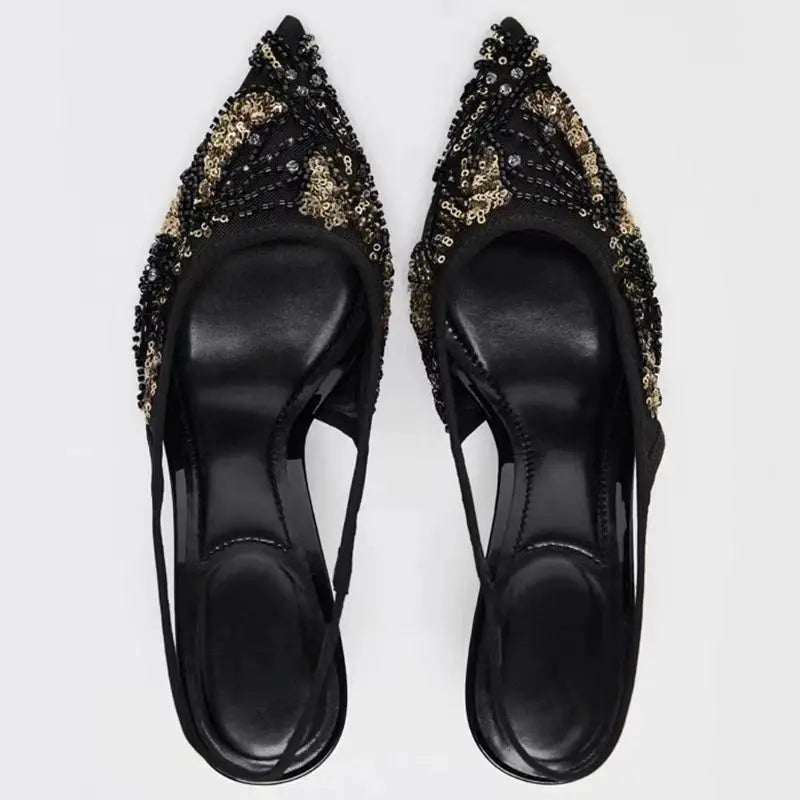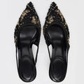Luxury Bling Brand Designer Heeled Sandals Women Mesh String Bead Design Elegant Mule Shoes Fashion Wedding Bridal Heels Pumps