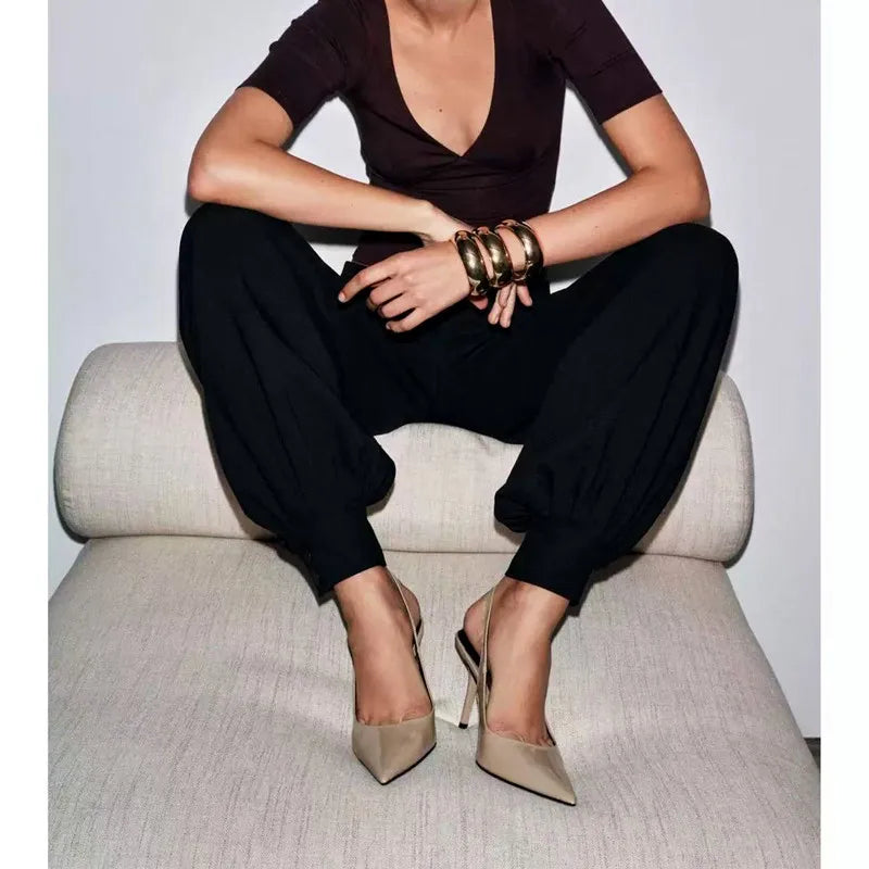 Luxury Brand Designer Women Pumps Sexy Pointed Toe Metal Buckle Design Elegant Dress Heels Ladies Fashion Wedding Bridal Shoes