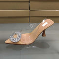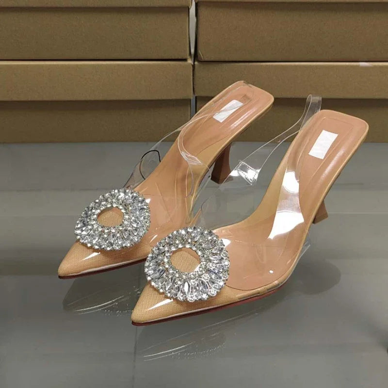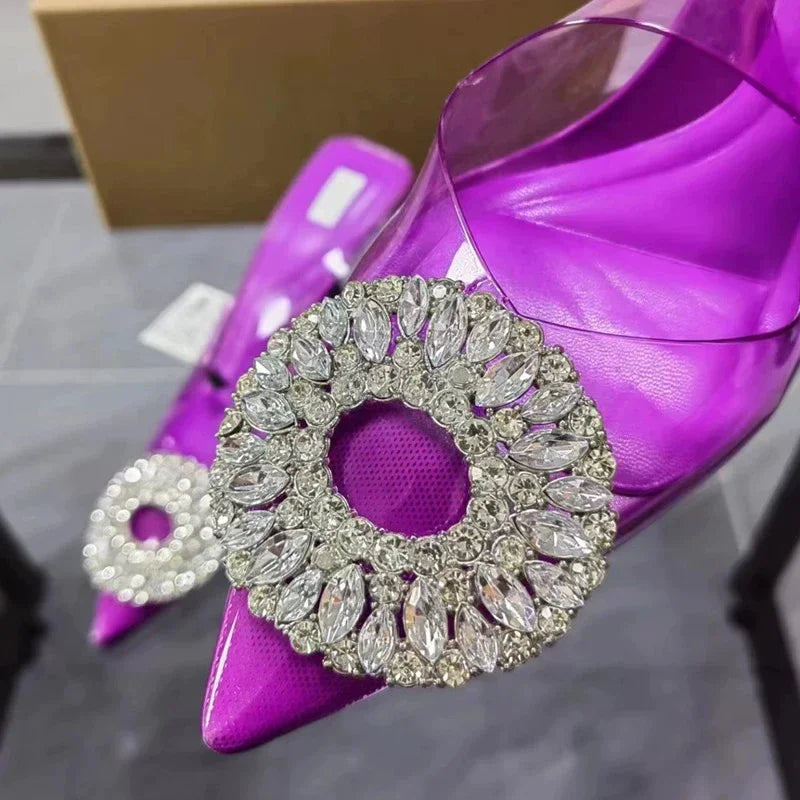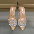 Luxury Brand Women Slingback High Heels Sandals Rhinestones Circle Transparent PVC Weddings Bridal Pointed Shoes for Lady