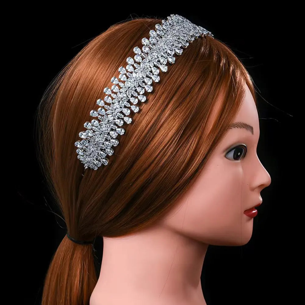 Luxury Bridal Headband Wedding Headdress Cubic Zirconia Bride Headpiece Tiaras Crowns For Women Party Prom Hair Jewelry Hairband