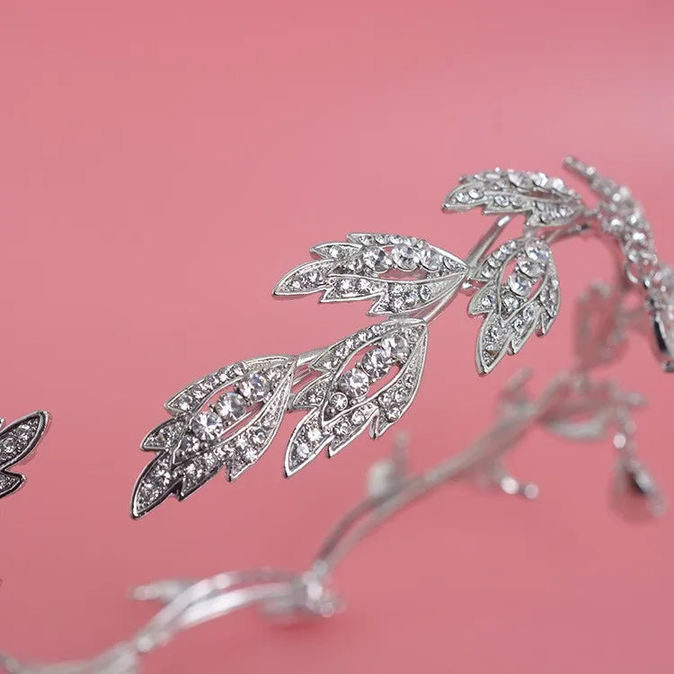 Luxury Crystal Crown Bridal Hair Accessories Wedding Rhinestone Waterdrop Leaf Tiara Crown Headband Frontlet Brides Hair Jewelry