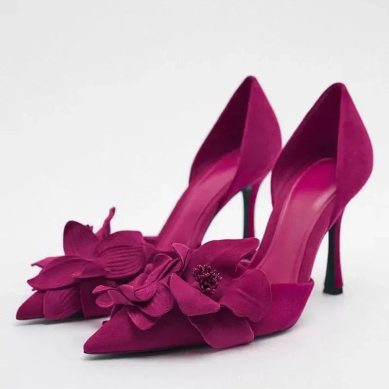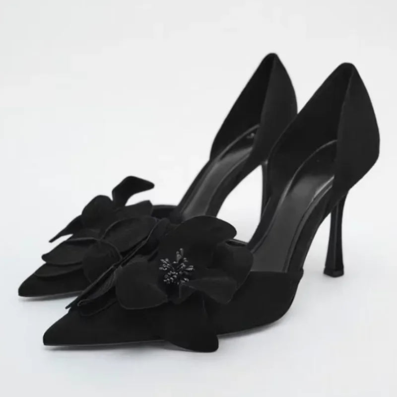 Luxury Designer Flower Decoration Women Pumps Sexy Pointed Toe Hollow High Heels Elegant Banquet Dress Shoes Tacones De Mujer