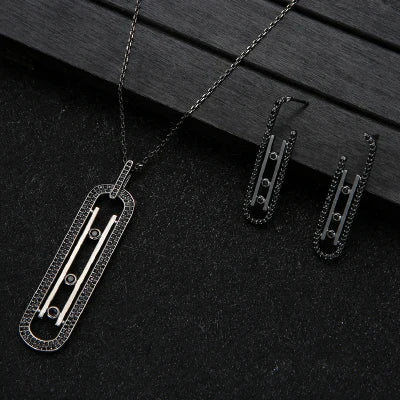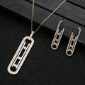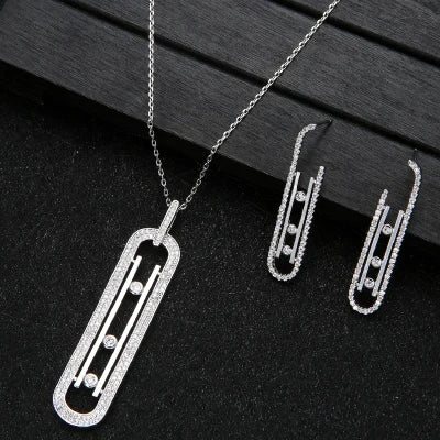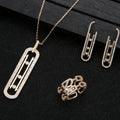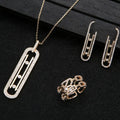 Luxury Geometry Link Stackable Pendant Necklace Earring ring set Beautiful Full Cubic Zircon Charm Women Jewelry Gift e9361