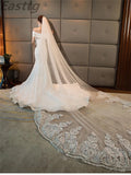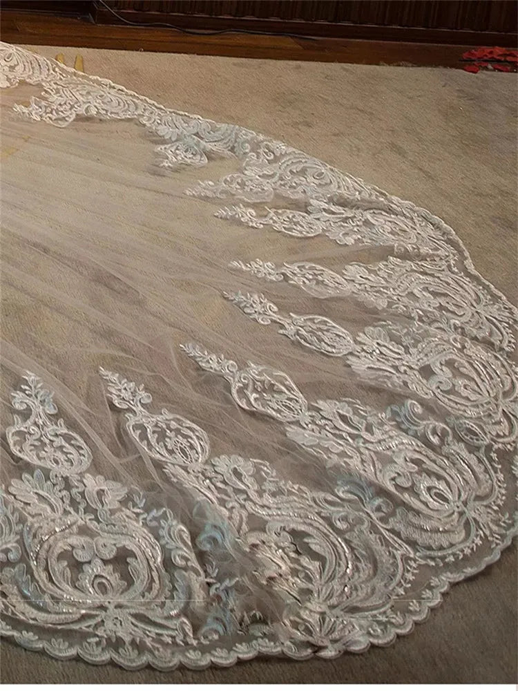 Luxury High Quality White/Ivory Long Bridal Veils Cathedral Length Lace Applique 4M Wedding Veil With Comb Wedding Accessories