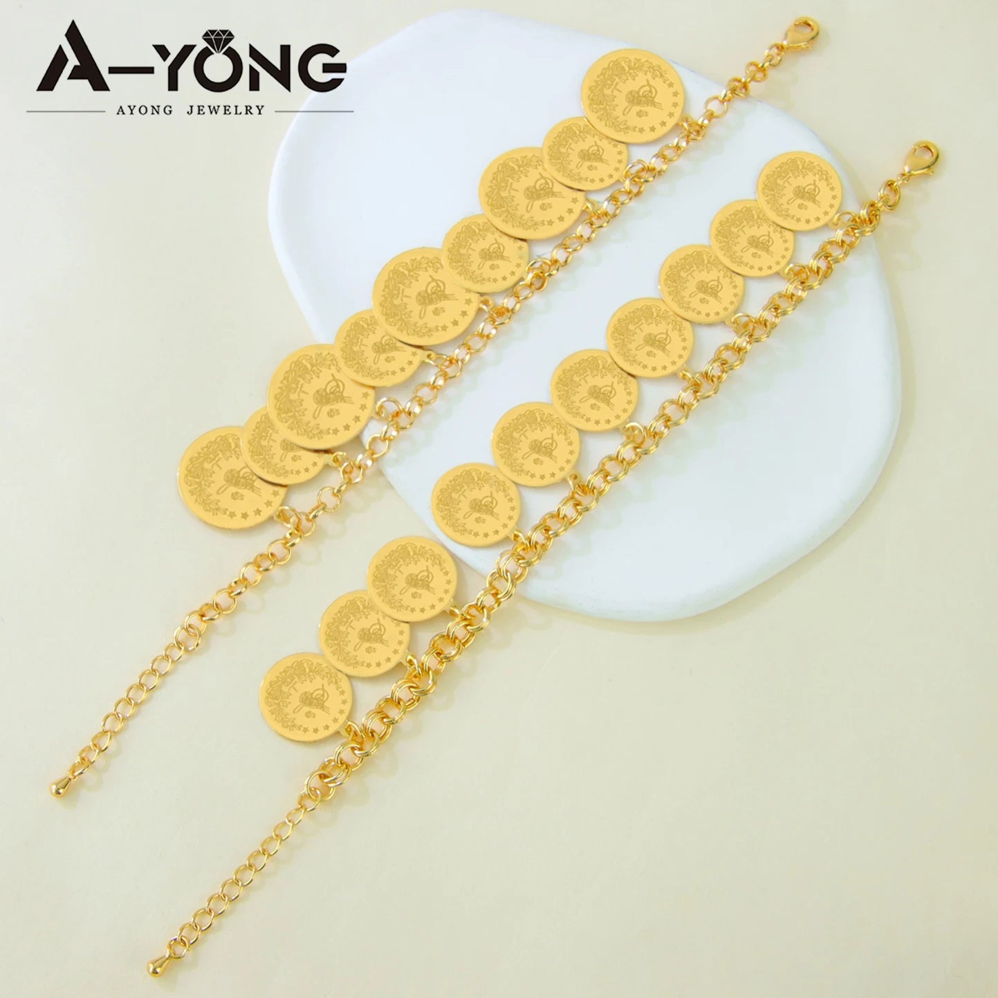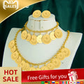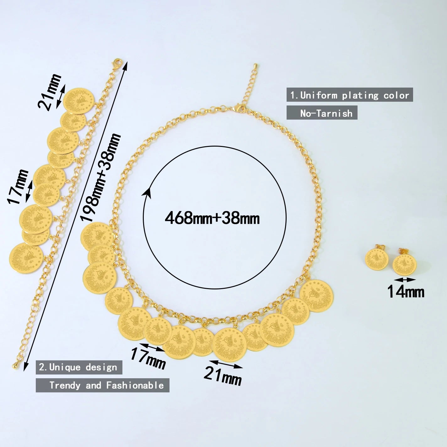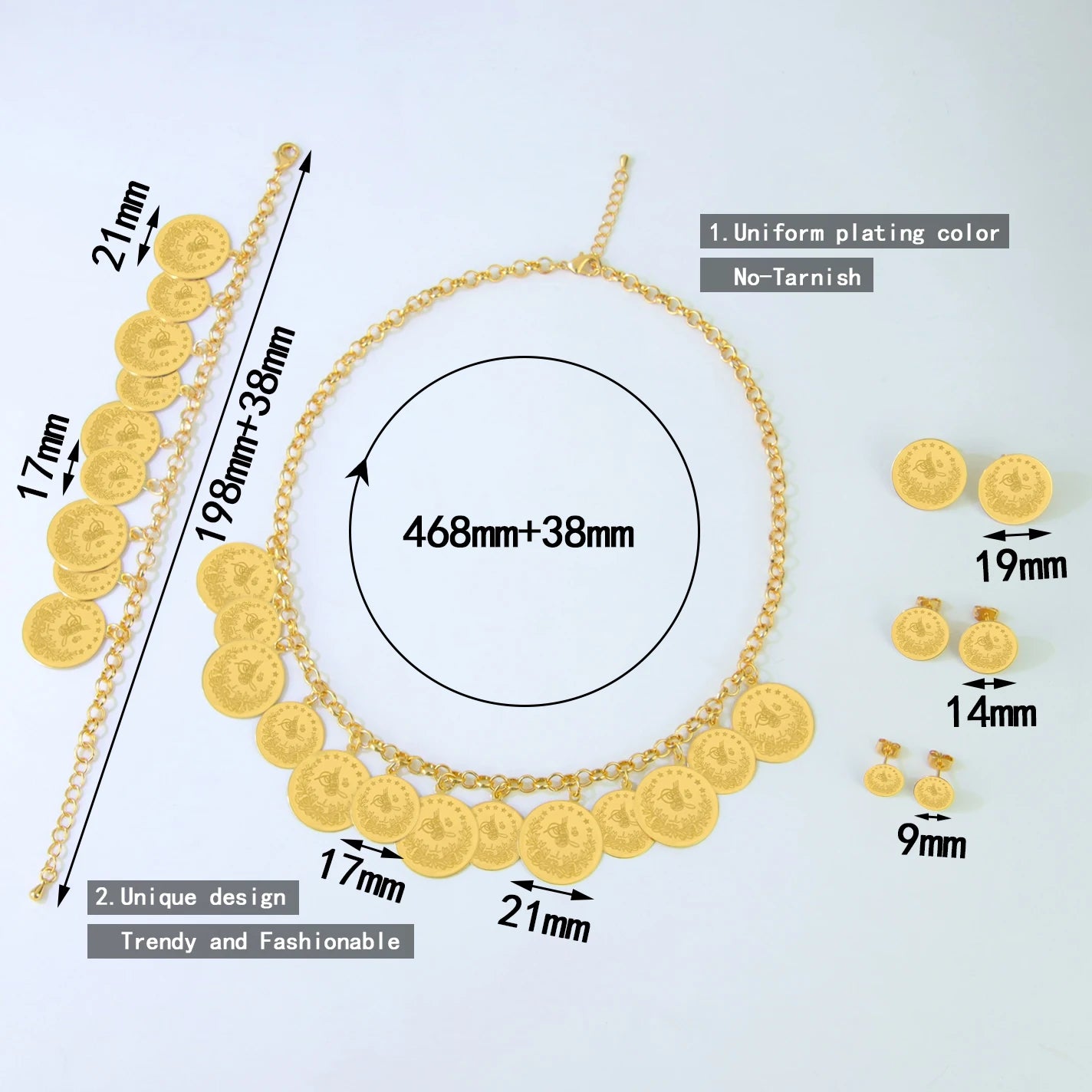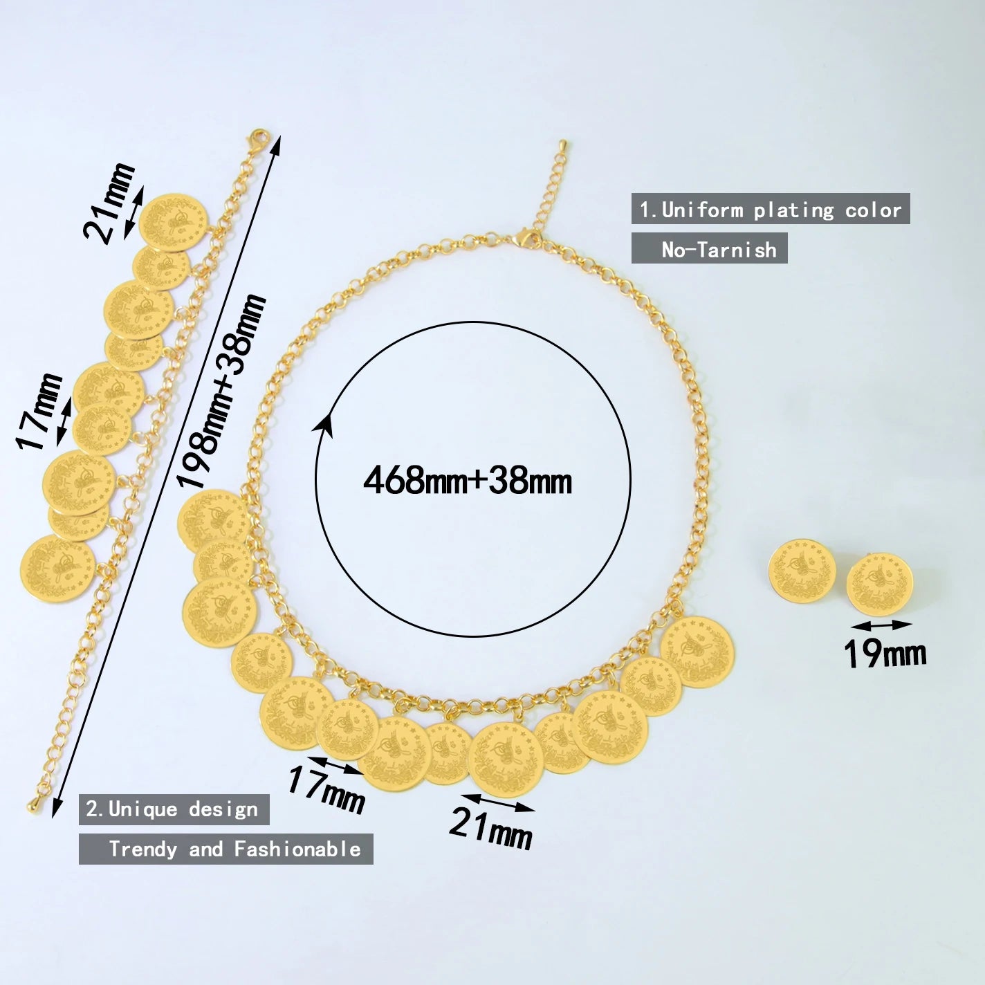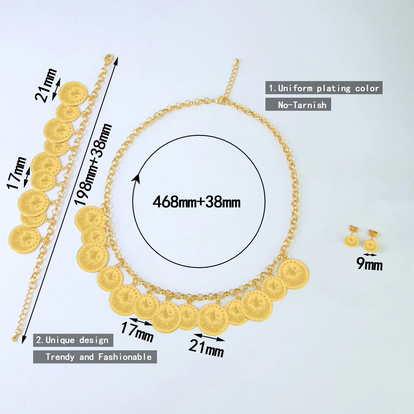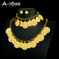 Luxury Saudi Gold Color Coins Necklace Set 21k Gold Plated Muslim Fashion Chokers Dubai Women Wedding Party Jewelry