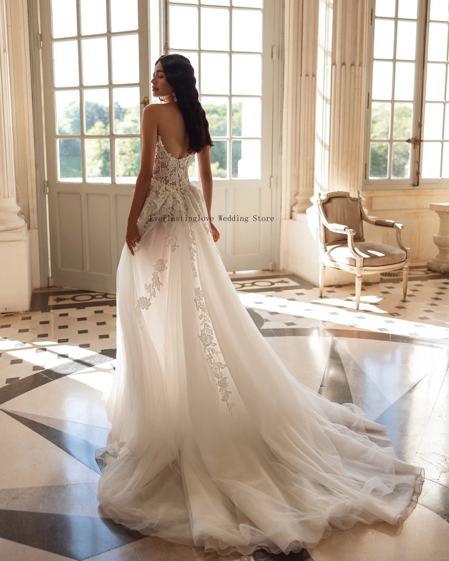 Luxury Scoop Neck A-Line Bridal Gown with Chantilly Lace & Elegant Slit Custom Made 2026 Rode De Morrie