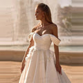 Luxury Sexy Satin Wedding Dresses A Line Women's Bride Gowns Flowers Sleeveless Sweep Train Backless Vestido De Novia Customized