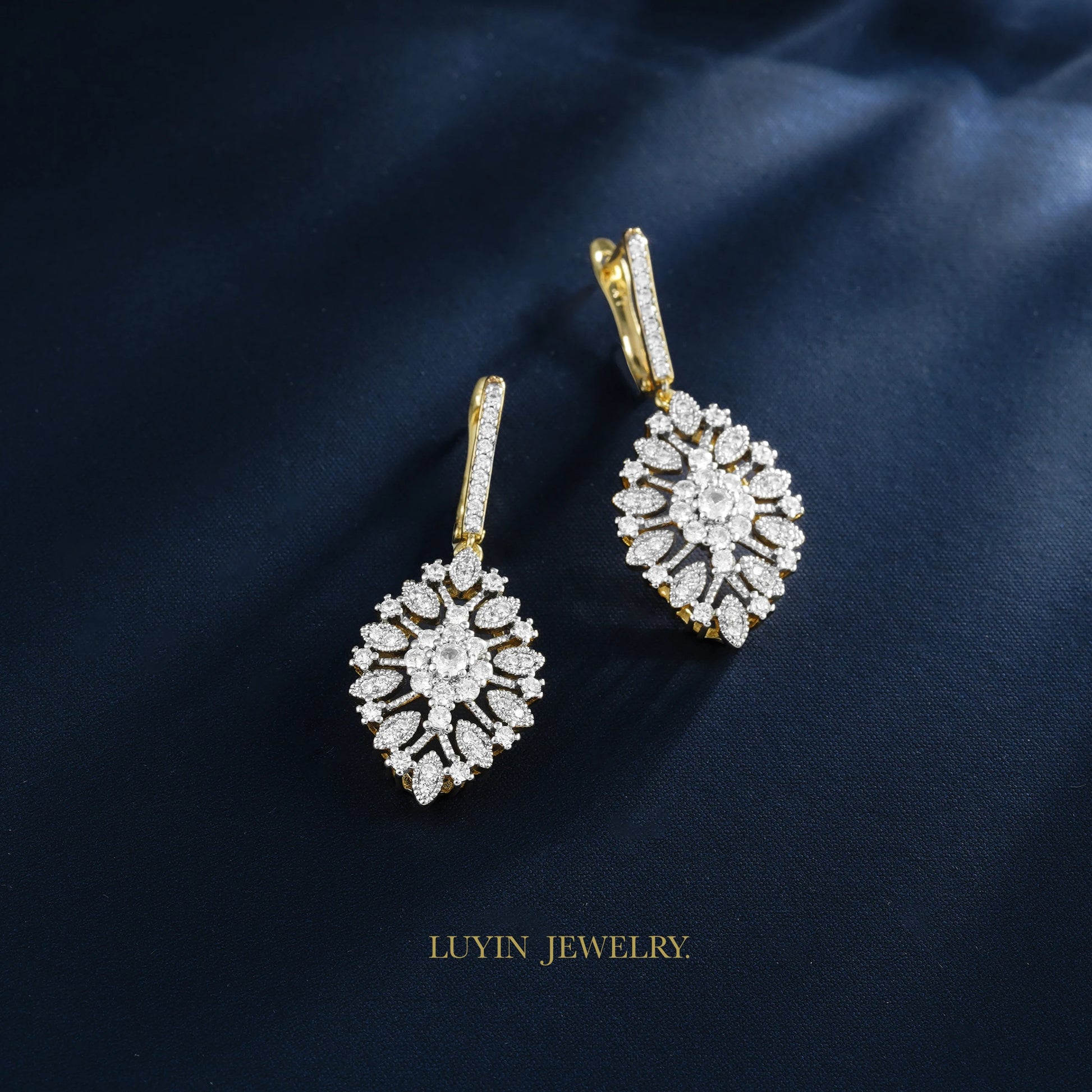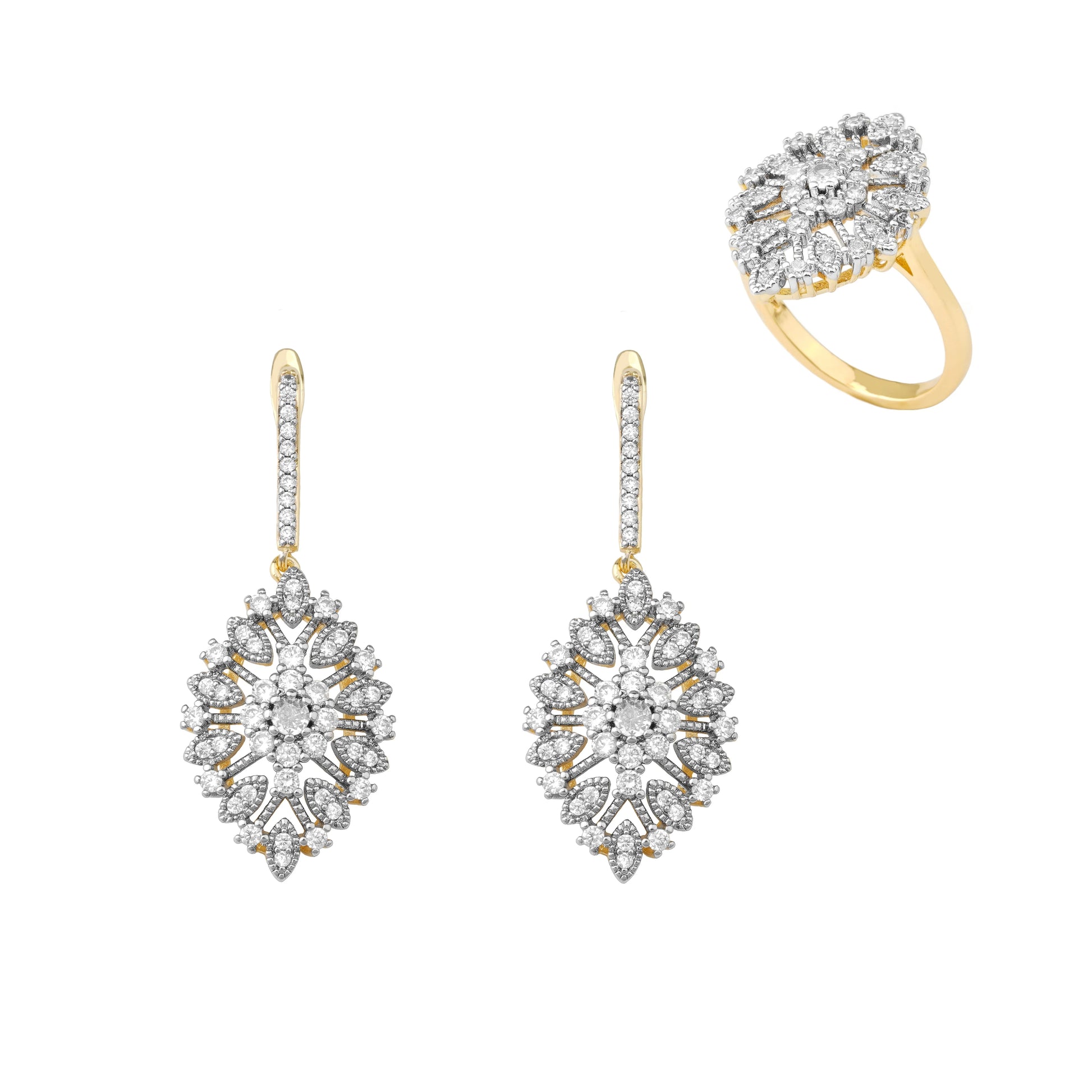 LUYIN Well-Chose Hollow Dangle Design Earrings Ring Set For Women Copper Plated 14K Gold 2 Color Jewelry For Wedding Accessories