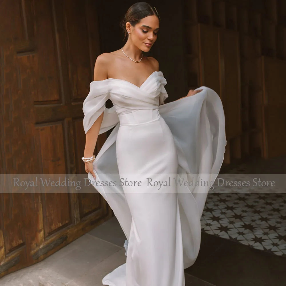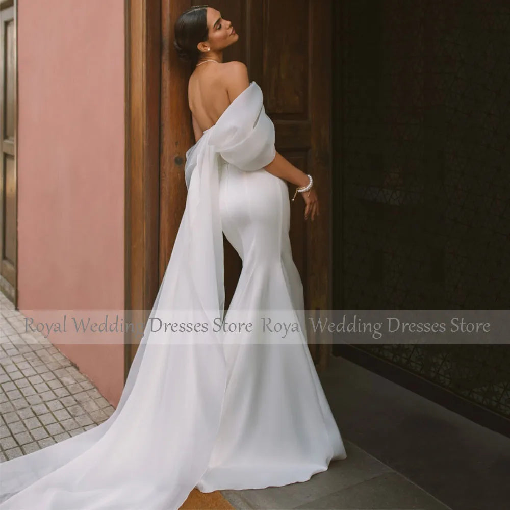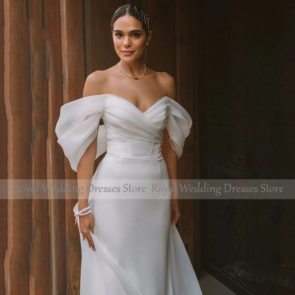 Mermaid Wedding Dresses Ivory Organza Satin Off the Shoulder Elegant Wedding Gown for Bride V Neck Backless Trumpet Bridal Dress