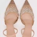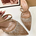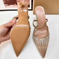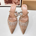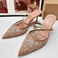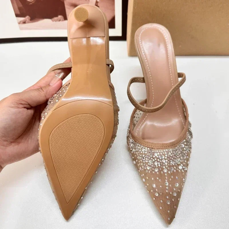 Mesh Rhinestone Breathable High Heels Women Pointed Toe Pumps Mules Sexy Party Shoe Crystal Luxury Brand Slippers Ladies Sandals