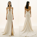 The front slit adds effortless movement and sophistication, while the open back creates a breathtaking finish for both ceremony and reception.