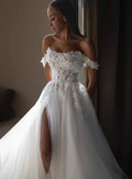 Moder Off The Shoulder 3D Flower Lace Applique Tulle Organza Boho Beach A Line Wedding Dresses Side Slit Custom Made 2023 Vestid