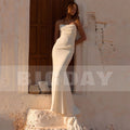 Modern Mermaid Wedding Dress Women 2025 Pleat Boat-Neck Open Back Buttons Sleeveless Bridal Gown Vestidos De Noiva Customized