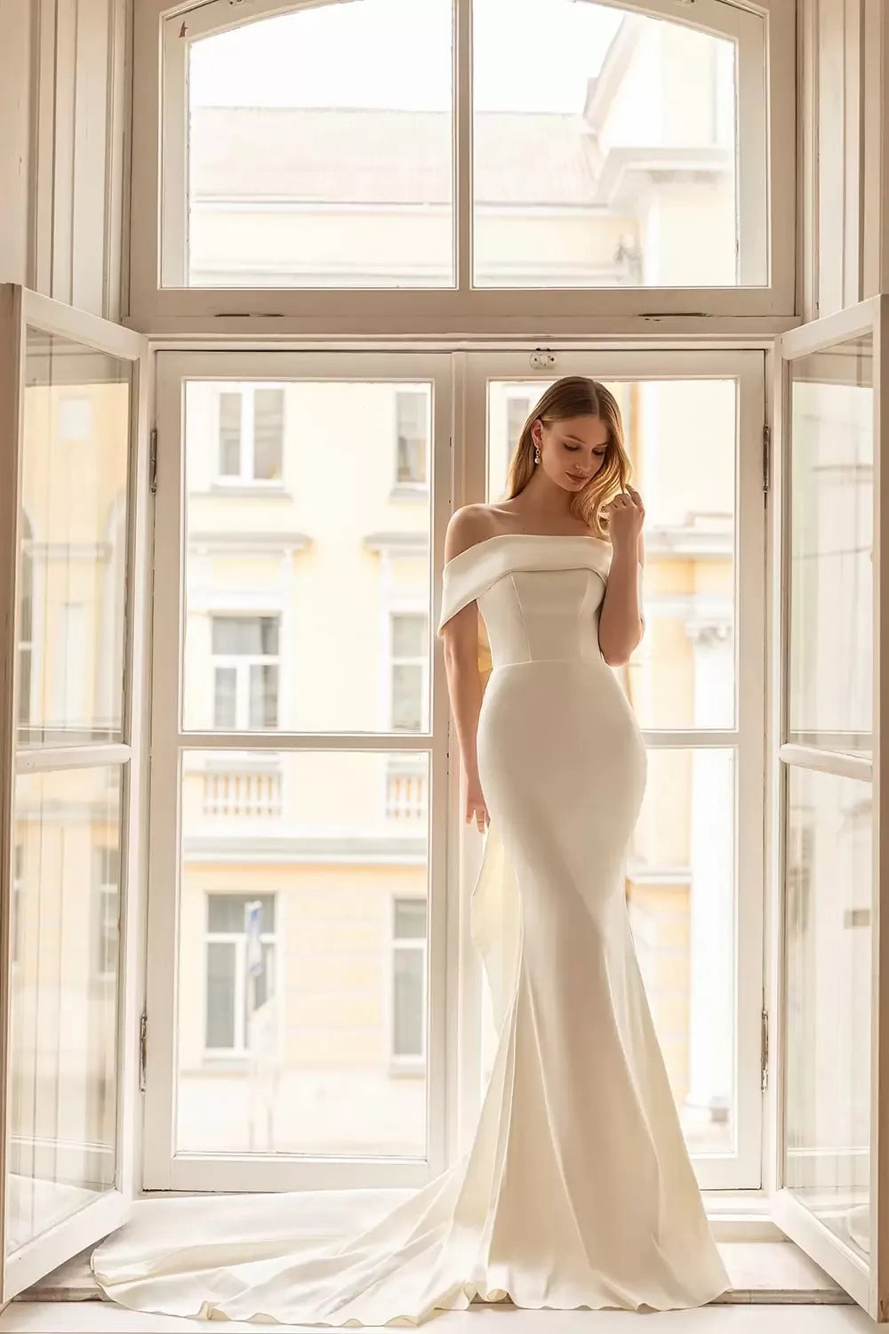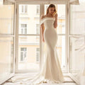 Modern Off The Shoulder Sheath/Mermaid Wedding Dresses Back Big Bow Long Train Custom Made 2025 Rode De Morrie