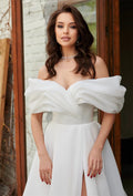 Modern Pleat Off The Shoulder Organza A Line Wedding Dresses Side Slit Bridal Grown 2026 Vestido De Noival