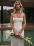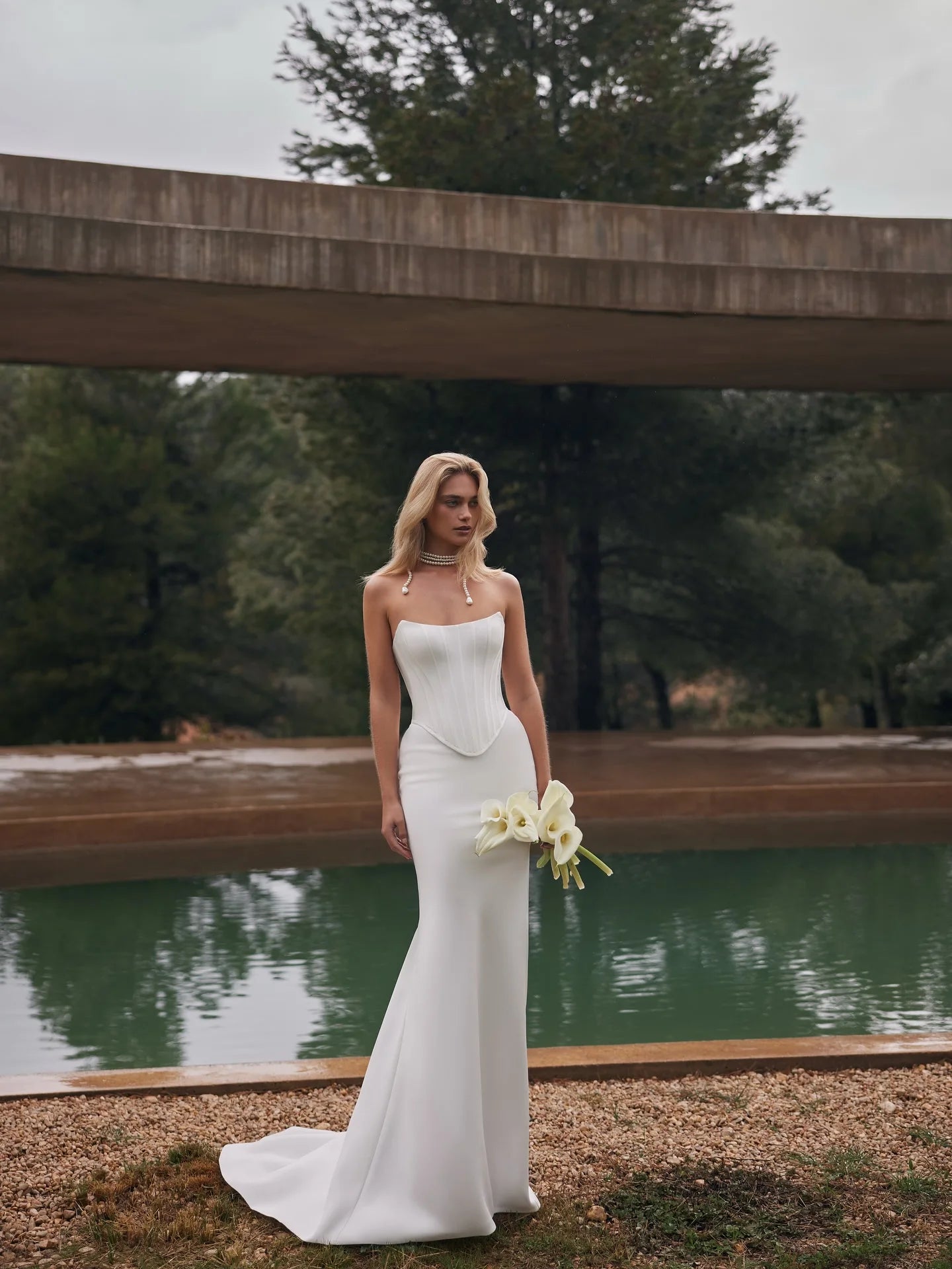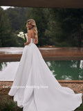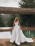 Modern Two-Piece Satin Wedding Dress - Detachable Long Train & Corset Top Bridal Gown