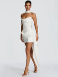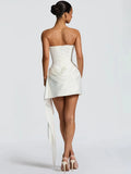 Mozision Off-shoulder Strapless Sexy Mini Dress Women Elegant Sleeveless Backless High Waist Draped Ruched Club Party Dresses