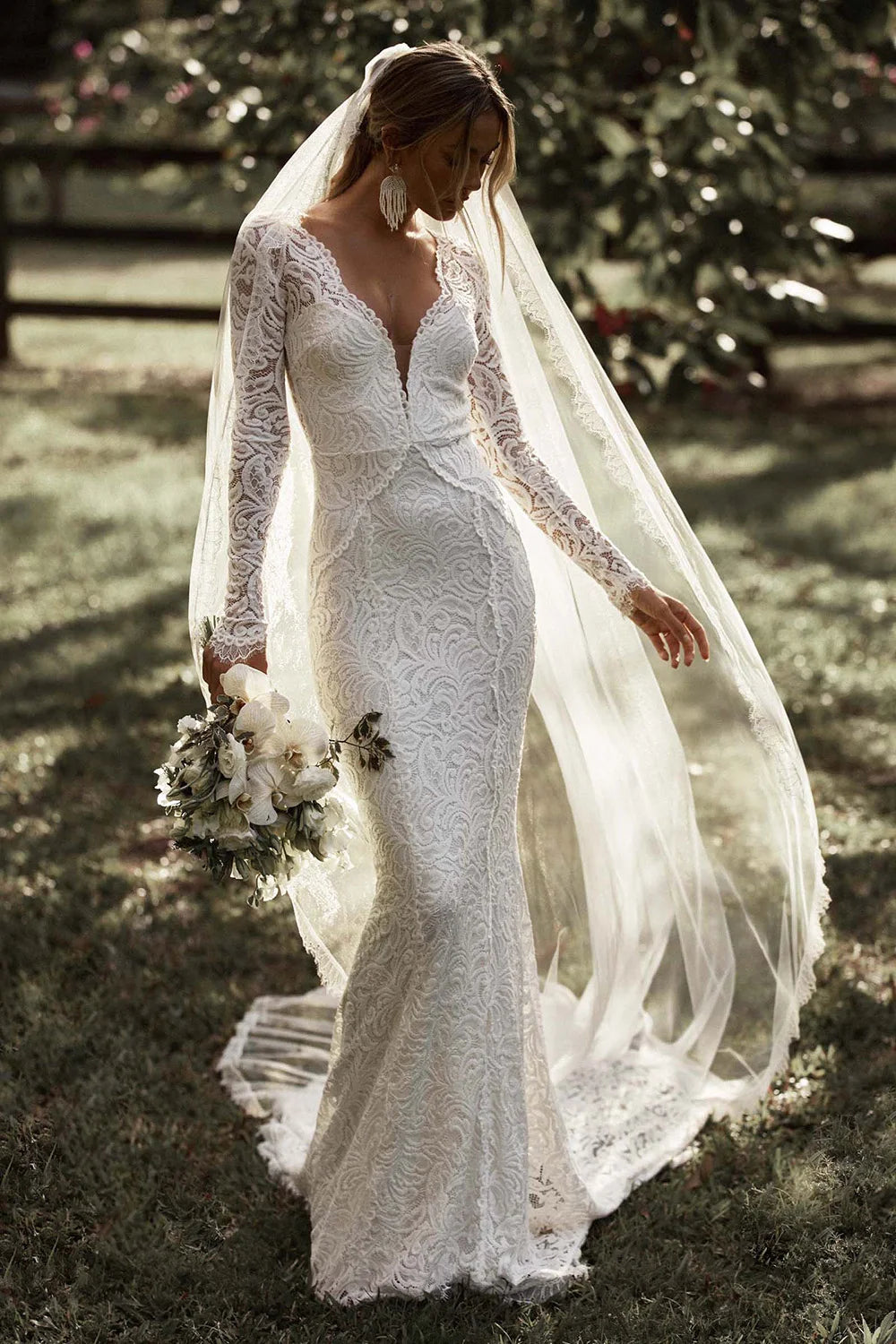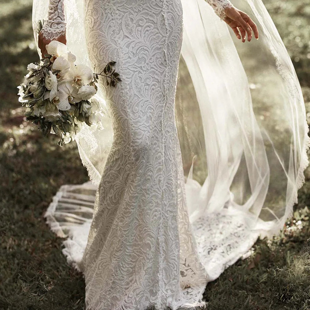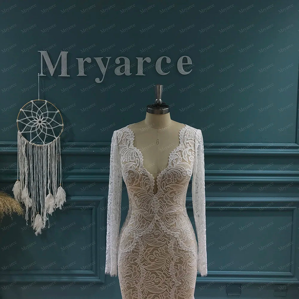Mryarce 2022 New Stretch Lace Long Sleeves Mermaid Wedding Dress Flexible Boho Bridal Gowns