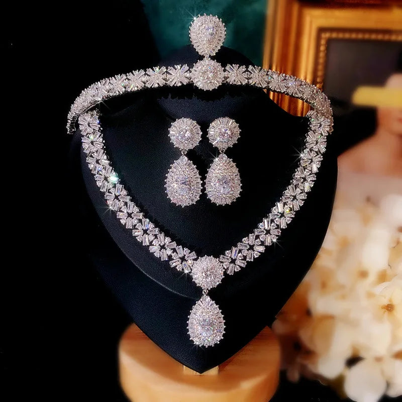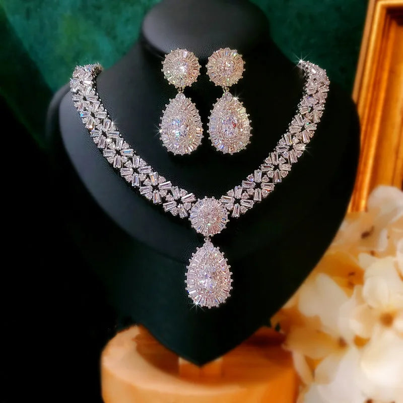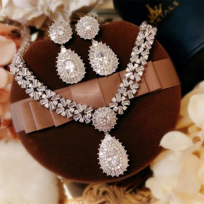 Necklaces Earring Set S925 Silver Needle 2pcs Bridal Jewelry Sets For Women Crown Wedding Cubic Zirconia Accessories