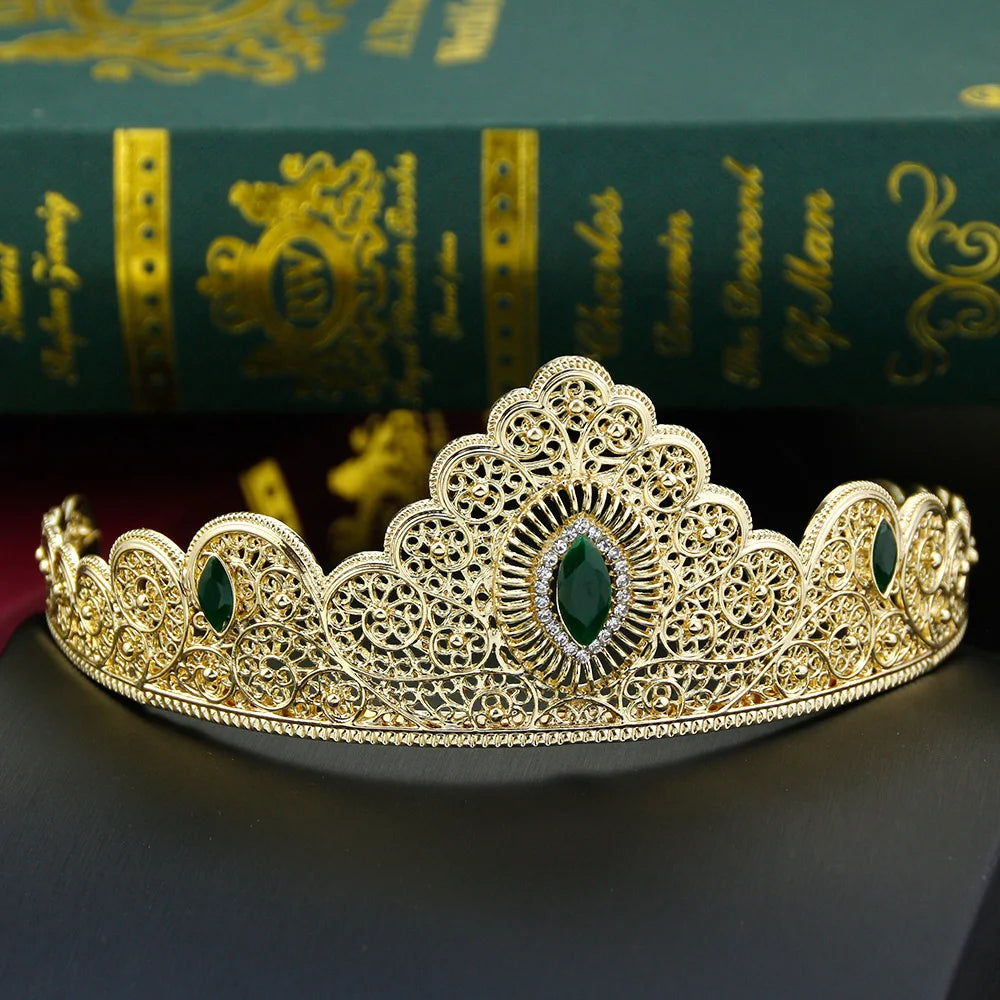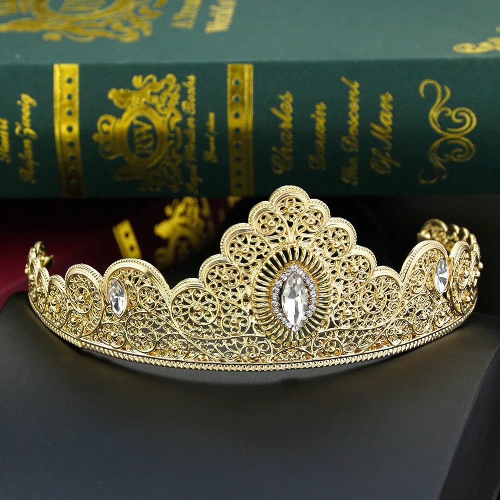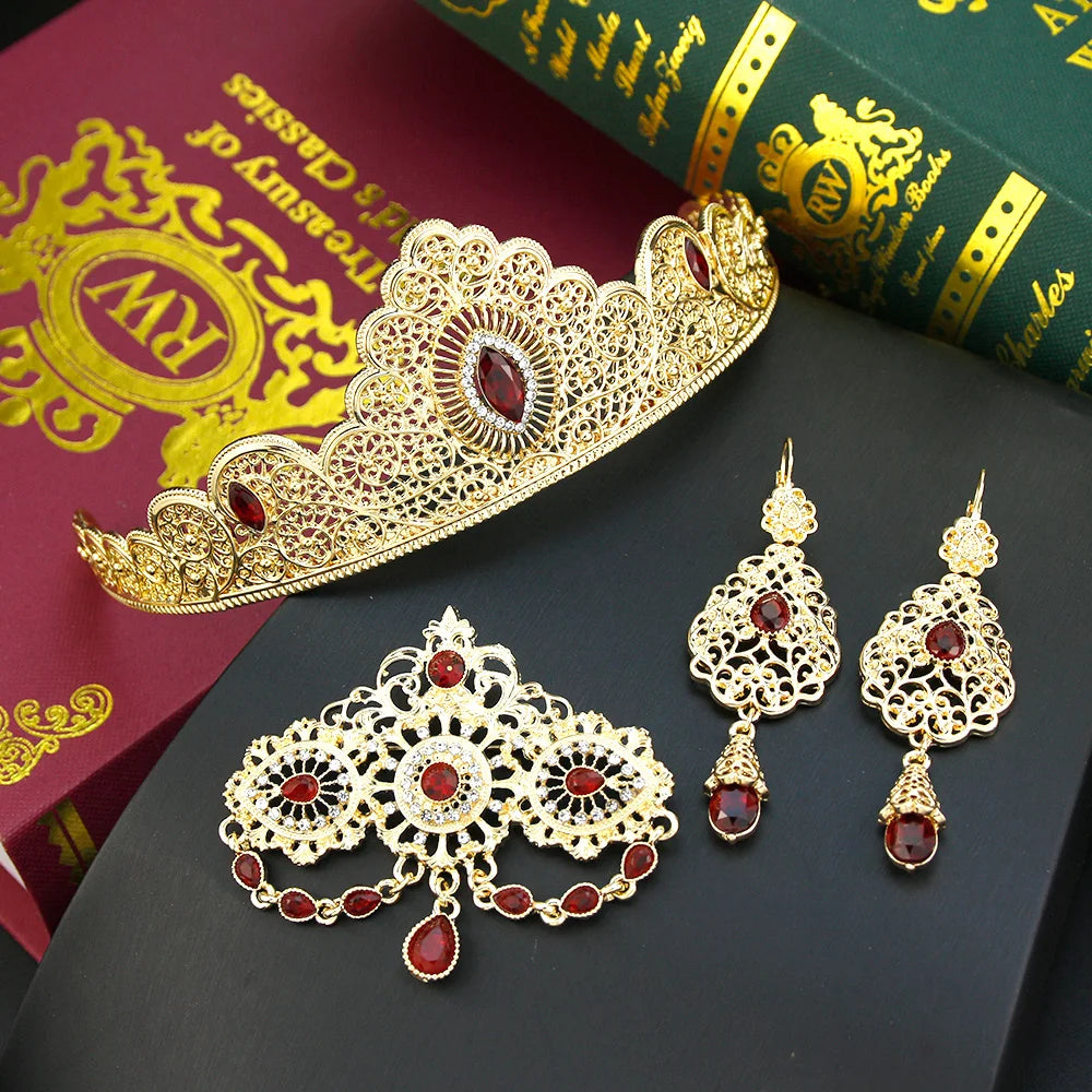 Neovisson Morocco Ladies Favorite Gift Crown Set Gold Color Cystal Hair Jewelry Tiaras Arabic Bride Wedding Jewelry Headband