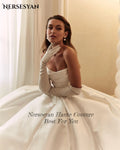 Nersesyan Vintage Satin Wedding Dresses Off Shoulder Pleats A-Line Backless Bridal Gowns Princess 2024 Bride Dress No Gloves