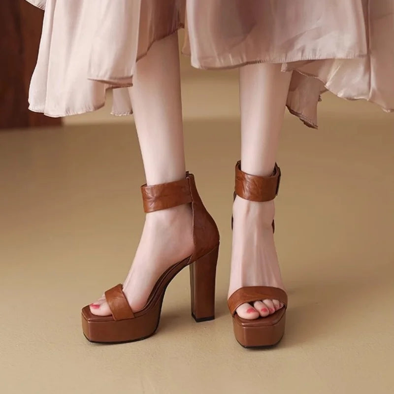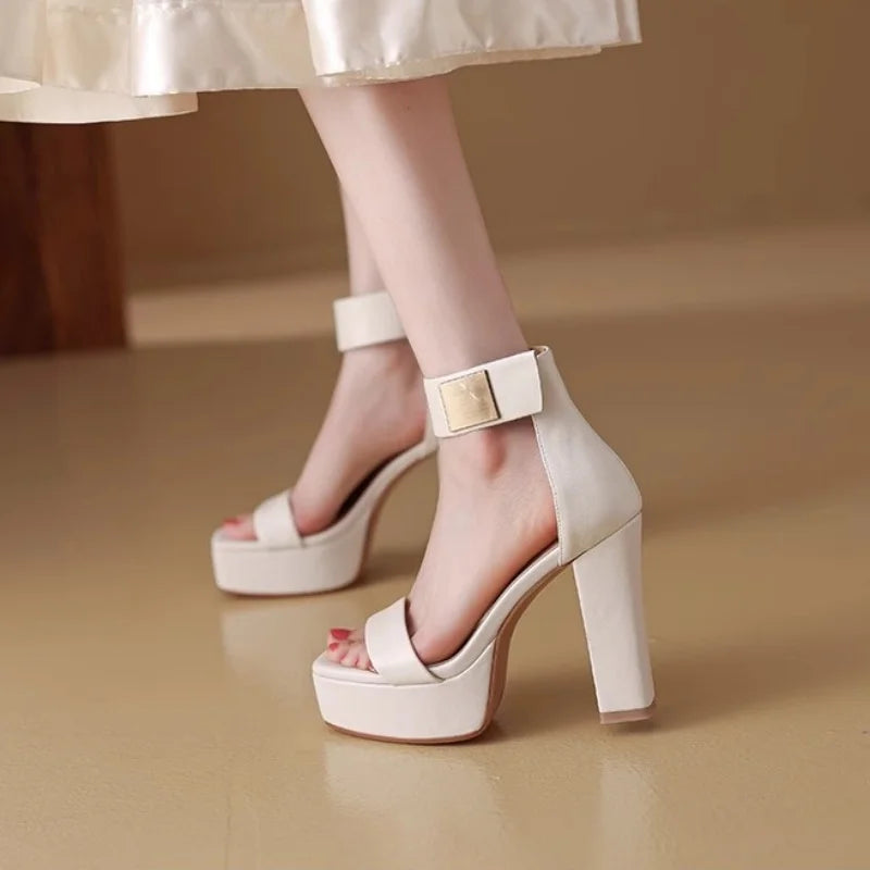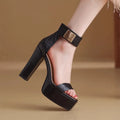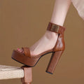 New Summer Elegant Round Toe Waterproof Platform High Heels Fashionable Comfortable Thick Heels One-strip Sandals for Women