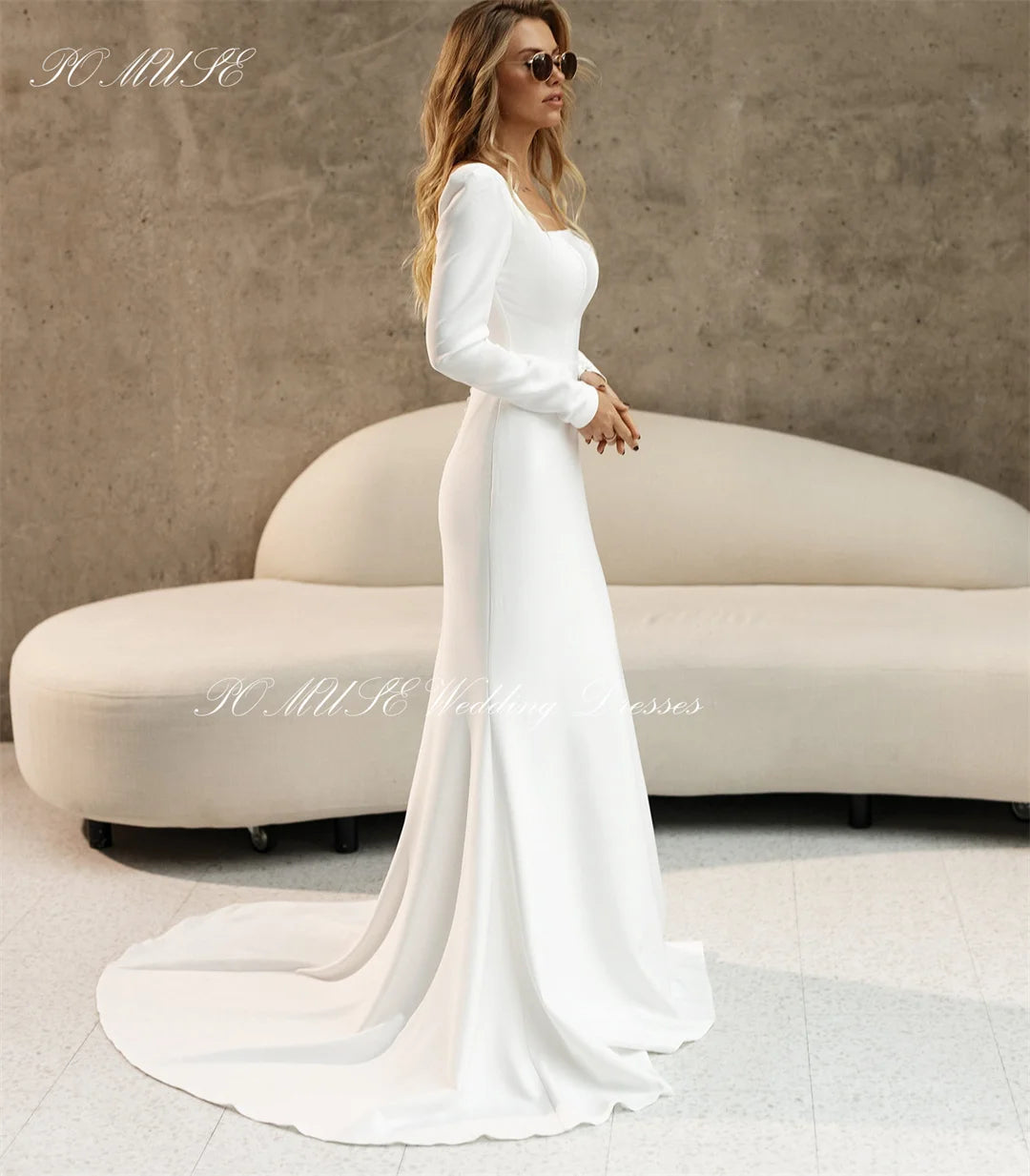 POMUSE Customized Buttons Wedding Dresses Long Sleeves Fit Country Wedding Bride Gown Custom Made Vestido De Novia for Women