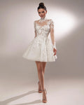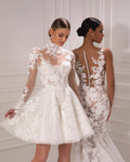Popular High Neck Full Sleeves Lace Applique Short Wedding Dresses Custom Made 2025 Bridal Grown Rode De Morrie